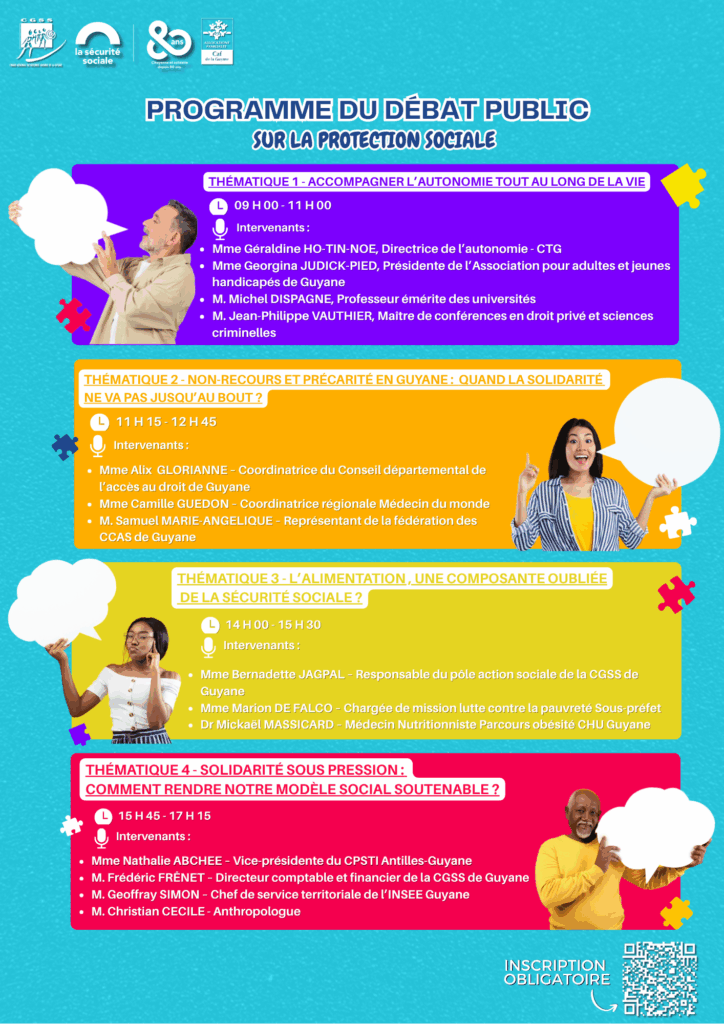 Dans le cadre des 80 ans de la Sécurité sociale, la CGSS et la Caf de Guyane organisent un débat public ouvert à tous, autour de quatre grandes thématiques qui interrogent notre modèle social et son adaptation aux réalités du territoire, le 27 novembre 2025.