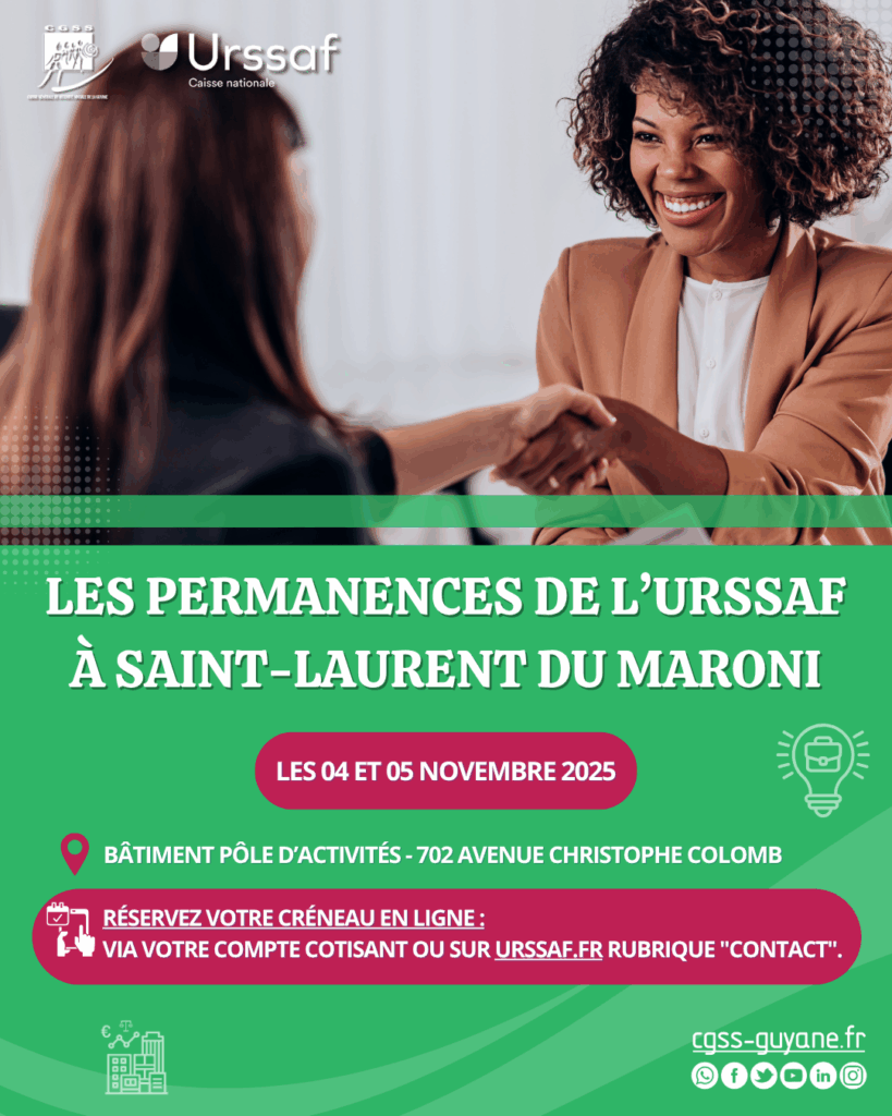 Les 04 et 05 novembre 2025, l’URSSAF Guyane va à la rencontre des cotisants de l’Ouest guyanais en…